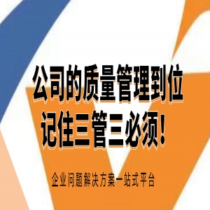 公司的质量管理到位记住三管三必须!我们都知道,安全生产管理有三管三必须(管行业必须管安全,管业务必须管安全,管生产必须管安全),其实,在质量管理方面,同样也存在三管三必须,即管行......